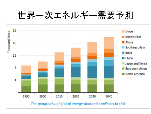 注)新政策シナリオは約束草案を踏まえた将来のエネルギー・シナリオであり、最も 実際に近いものと言えよう。グラフに見るように、インド、中国、中東などの新興国・後進国の消費増大は大きなものがある。